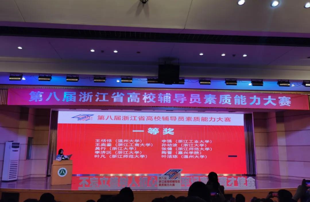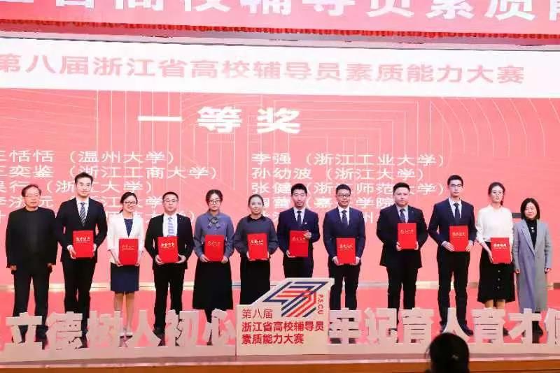 12月1日至3日,第八届浙江省高校辅导员素质能力大赛在浙江师范大学举行。本届大赛,浙江省共87所高校的106位辅导员参加了比赛,有150余位领队参加观摩。经过基础知识测试、案例研讨和谈心谈话三个环节的激烈角逐,学校两位参赛辅导员均斩获一等奖,学校获优秀组织奖。其中,成人色情 辅导员王恬恬老师以扎实的理论基础、专业的能力素养和丰富的工作沉淀荣获全场第一,展现了成人色情 辅导员出色的职业能力与个人风采。