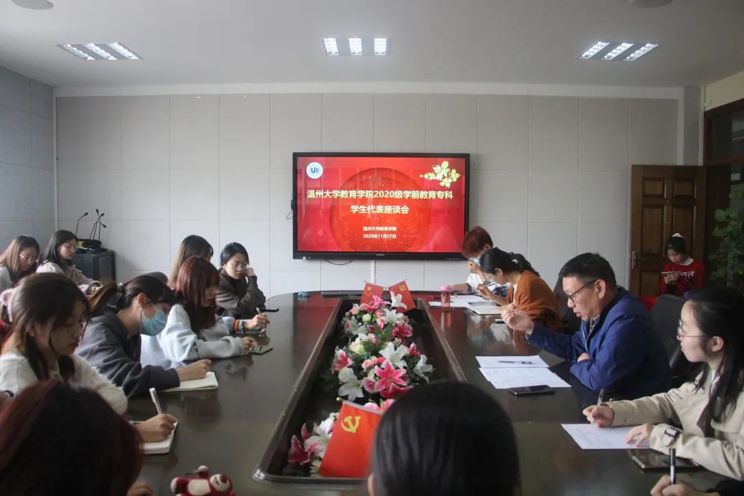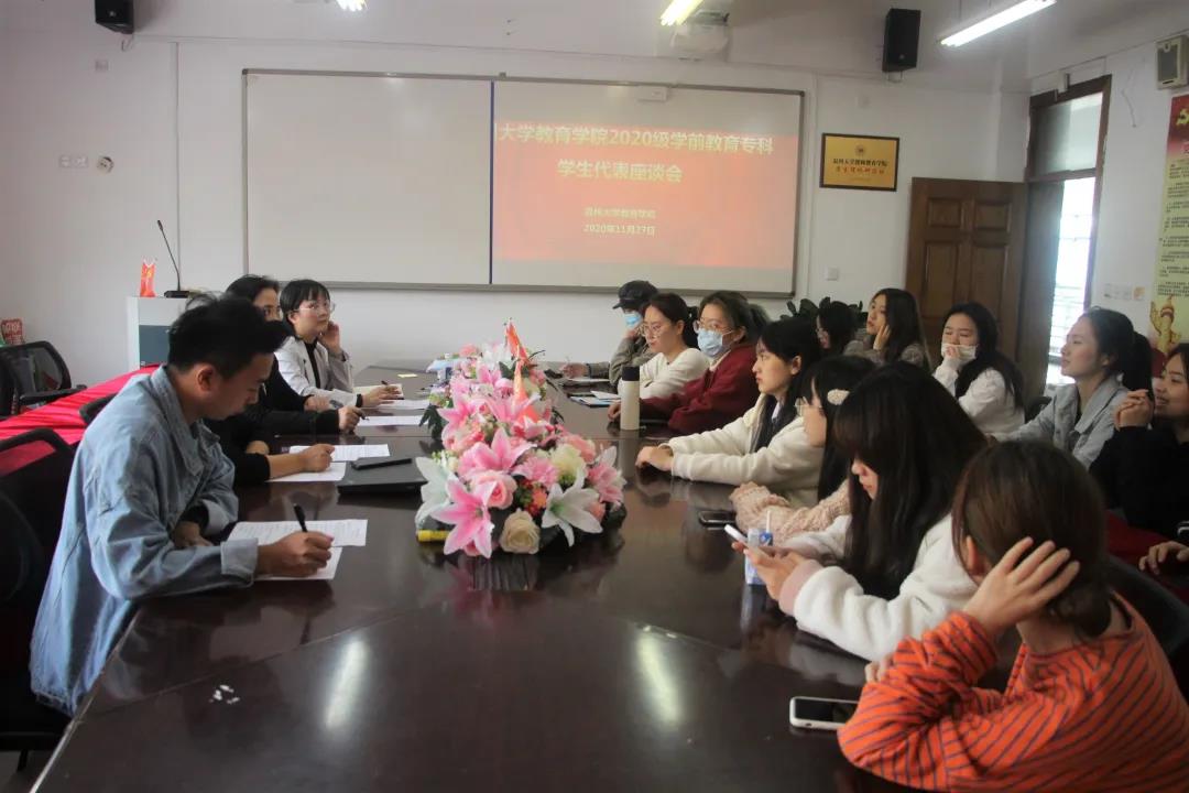 为更好地推动学院发展建设,解决专科学生在学习与生活中遇到的各种问题,11月27日中午,成人色情 召开20级学前专科学生代表座谈会,出席本次座谈会的领导和老师有学院党委副书记章园园,学前教育系老师陈铿、龚泉,教务科老师夏瑶、何笃玉,学工办辅导员孟江龙、王恬恬。