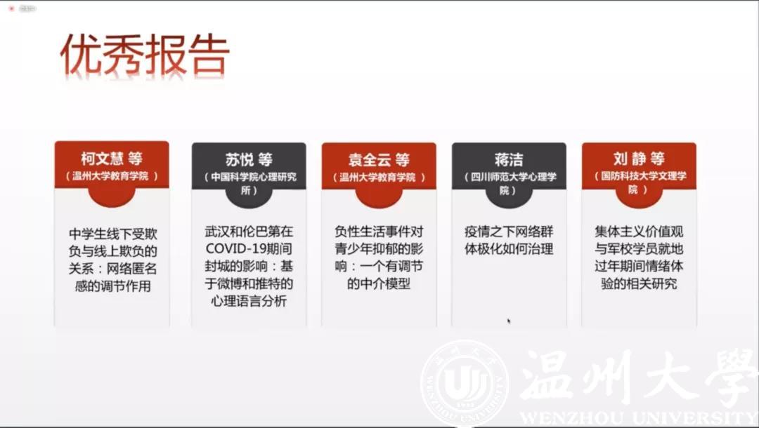 最后,胡平教授代表孟维杰教授简单介绍了下届承办单位鲁东大学的基本情况,鲁东大学坐落于优美的山东烟台,近几年学校承办多场心理学学术盛会,相信鲁东大学将会为大家呈现精彩而有成效的会议,谢天老师代表孟维杰教授向大家发出了诚挚的邀请,期待明年线下重聚。