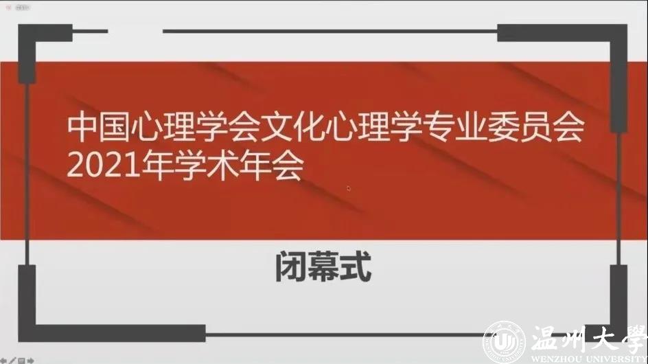 至此,中国心理学会文化心理学专业委员会2021年学术年会暨“疫情时代人类命运共同体理念下的文化理解”学术研讨会圆满落下帷幕。与往年相比,今年的论坛严格依照疫情常态化防控要求,采用线上的方式举办。为期两天的大会,嘉宾与观众互动频频,会议气氛热烈,高质量且精彩纷呈的会议报告让所有参会人员感到意犹未尽、收获颇丰。大会充分展示了专家学者们在文化心理领域中的前沿研究成果,不仅为学界同仁提供了一场异彩纷呈的学术盛宴,也为推动全球文化对话提供了国际化交流平台。大会所取得的各项成果将深入推动文化心理学理论发展与实践创新,助力人类命运共同体理念下文化体系的理解与构建,为全世界抵抗并战胜新冠疫情贡献智慧和力量。