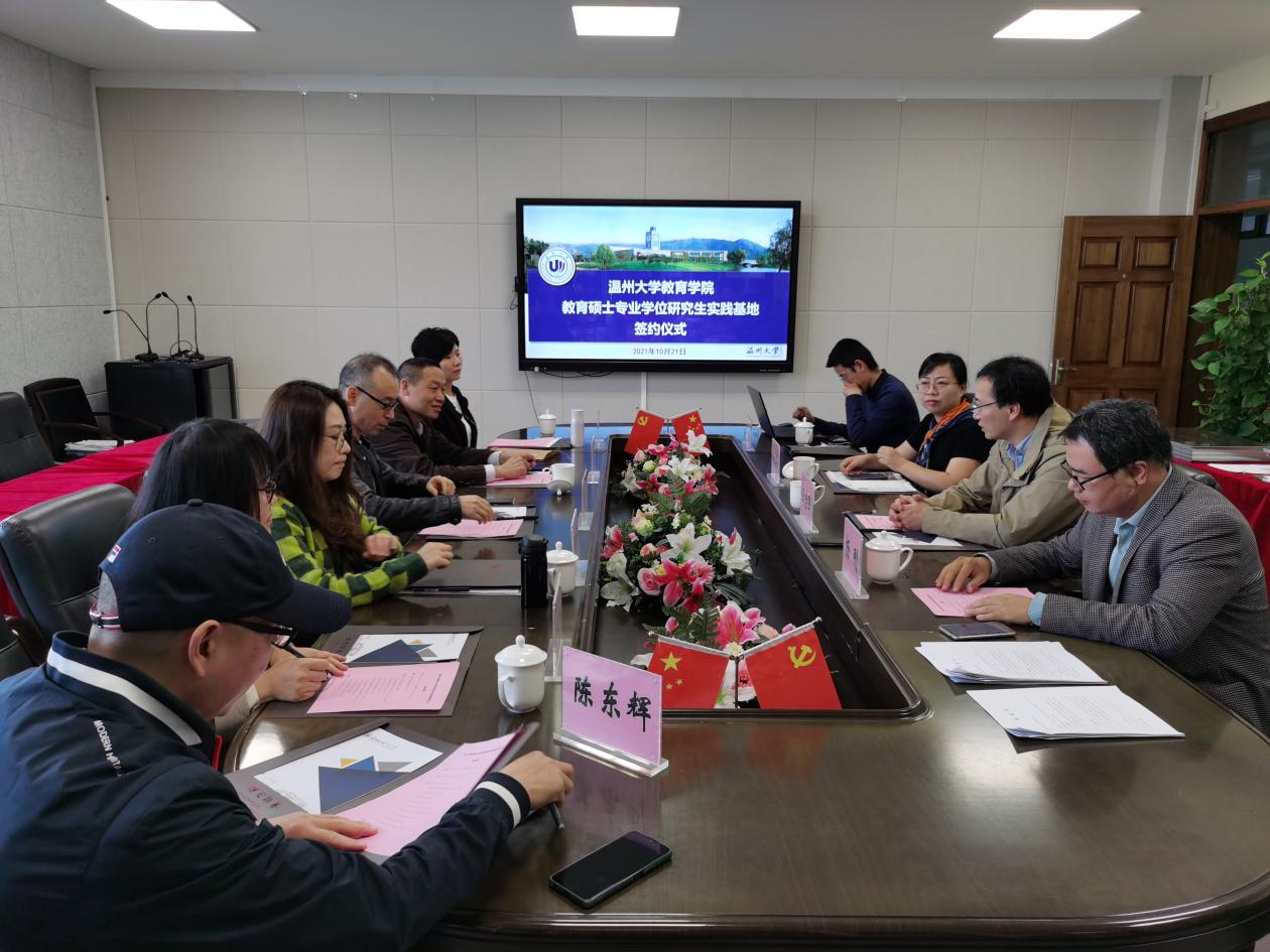 2021年10月21日早上9点,成人色情 在9A410举行教育硕士专业学位研究生实践基地签约仪式,此次签约也是成人色情 现代教育技术专业研究生教育实践基地首次进行的集体签约活动,参会人员为:成人色情 副院长王志强,现代教育技术应用专业教育硕士点负责人杨刚,教育技术学系硕导方建文,教育技术学系副主任赖文华,温州市实验小学副校长林彬,温州市南浦实验中学教务副主任刘荃,温州市南浦实验中学教育集团惠民路分校陈赛,温州市第二实验中学校长郭建昆,温州市第二实验中学郑煦,温州市实验小学办公室主任陈东辉。