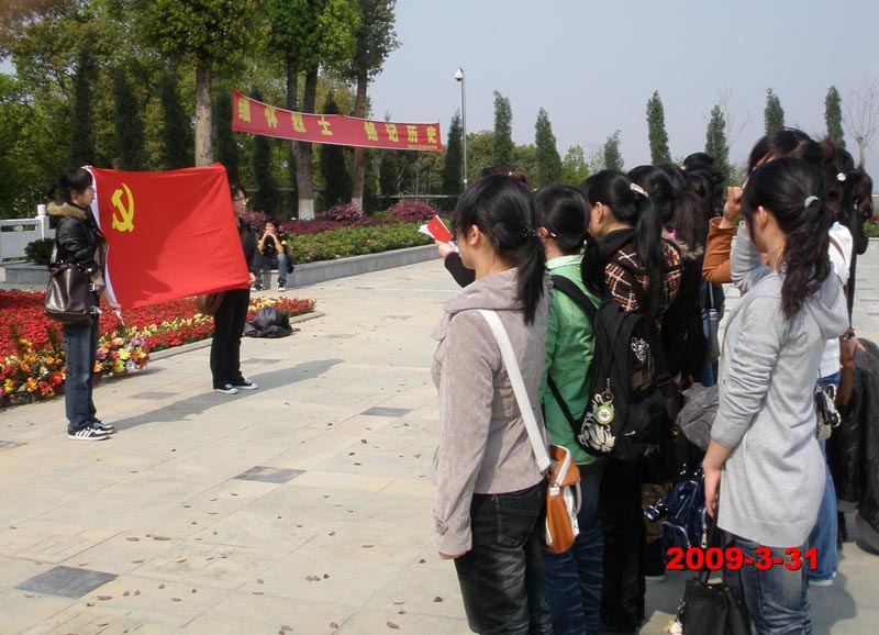 又是一个春暖花开的季节,时至清明,迎着和煦的微风,怀着对革命先烈的敬仰,成人色情 学生第一党支部的学生党员们,密切结合深入学习实践科学发展观活动,于3月31日下午前往温州翠微山烈士陵园扫墓。