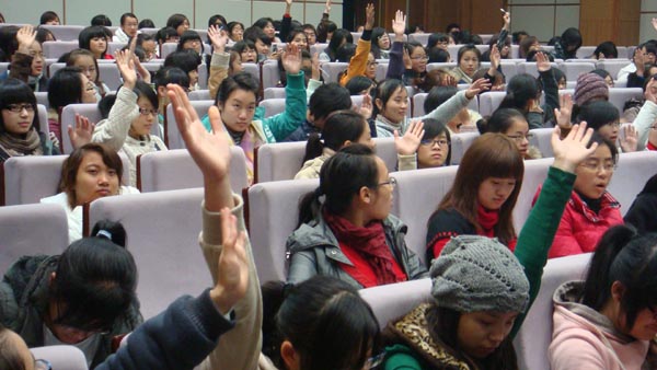 讲座上,张老师首先分析了近几年来既是教师成人色情 毕业生的就业情况以及温州各地区的人才需求量,引导同学们树立“居安思危”的危机感。接着,张老师结合自己的故事向同学们传授了宝贵的经验。他指出,用人单位最看重的是毕业生综合素质,而这就要求同学们在大学时代博览群书,提高基本技能和综合文化素养;不断实践总结,提高语言组织能力和随机调控能力;培养专业以外的特长,争做一名一专多能的整合型人才。最后,张老师总结性的明确了要做好一名优秀教师的基本要求:第一,要充满激情,富有诗意,敢于做梦;第二,夯实基本功,力取一专多能;第三,博览群书,做一个文化人;第四,追求卓越,自强不息;第五,善于合作,具有人格魅力;第六,善于交际,用活资源;第七,珍惜实习、见习机会,提前实践。