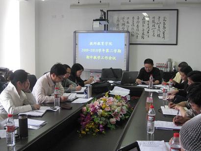在北校区教育楼311会议室召开了2009—2010学年第二学期期中教学工作会议。学院领导、各系(中心)主任、书记、教学委员会、实验教学委员会成员以及教学科有关人员参加了会议,会议由郑信军副院长主持。