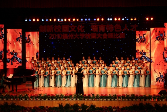 2010年校园大合唱比赛在大学生活动中心演艺厅隆重举行。莅临现场观看的有校领导、部门领导和学生代表。成人色情