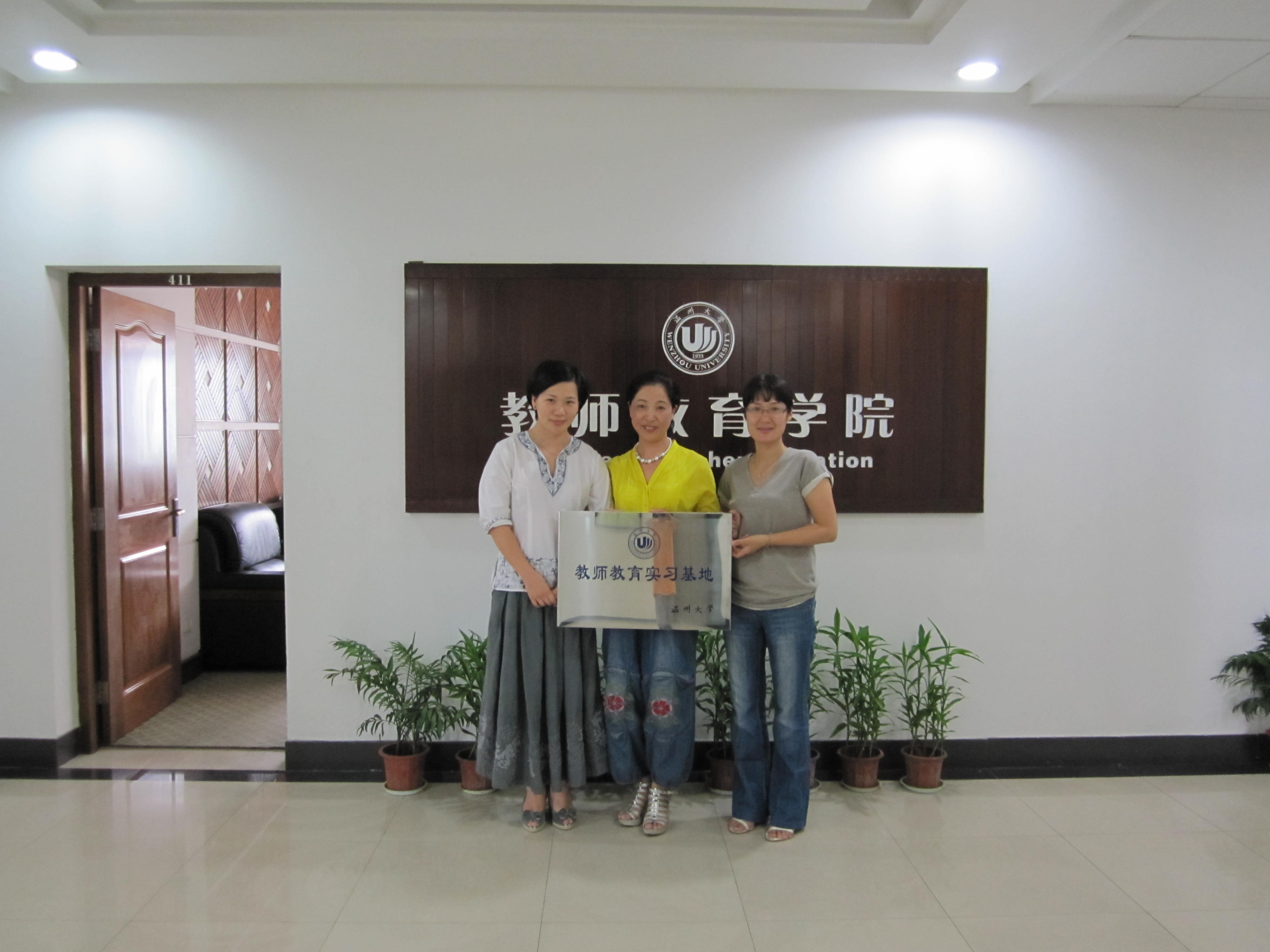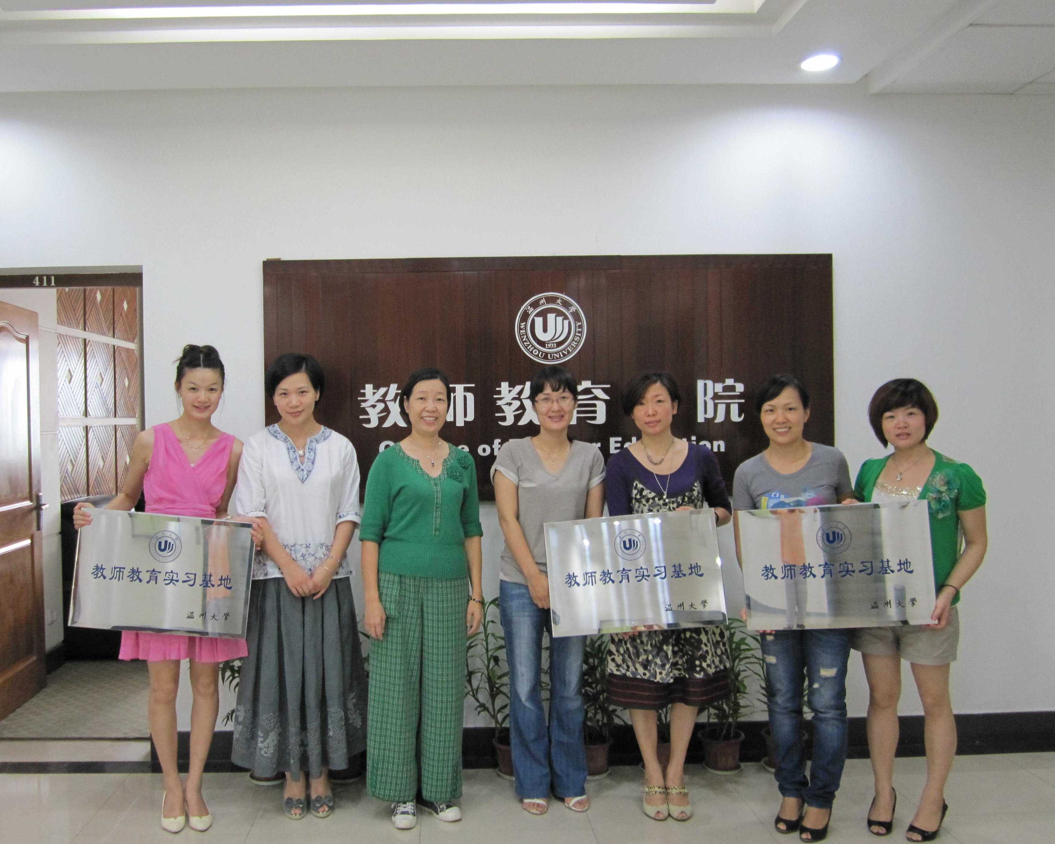的基本情况,学前系的历史及现在的发展情况,并重点介绍了两大拳头项目:教师教育基地和6号楼文科实验室;文科实验室里新购置的蒙氏教具和奥尔夫音乐教育教具引起了四位幼儿园领导的极大兴趣。在签完协议后,孙芙蓉副院长为四位幼儿园领导颁授了“教师教育教育实践基地”的铜牌。会后,孙芙蓉副院长带领客人兴致勃勃地参观了6号楼文科实验室。