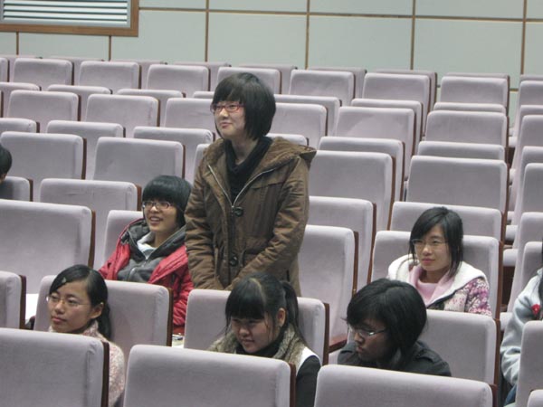 讲座共分三个环节。就大家最关心的问题,卜莹总监首先为大家介绍了温州鹏润国美电器的用人之道,她从企业的人才理念、人才培养、企业岗位、招聘流程等方面介绍该企业的人才选拔与培养情况。第二环节,卜总监以自己长期从事企业人力资源的工作经验出发,介绍了企业面试的基本内容与注意事项,她就自我推销意识与商务礼仪知识作了重点阐述。第三环节为双方互动交流,成人色情