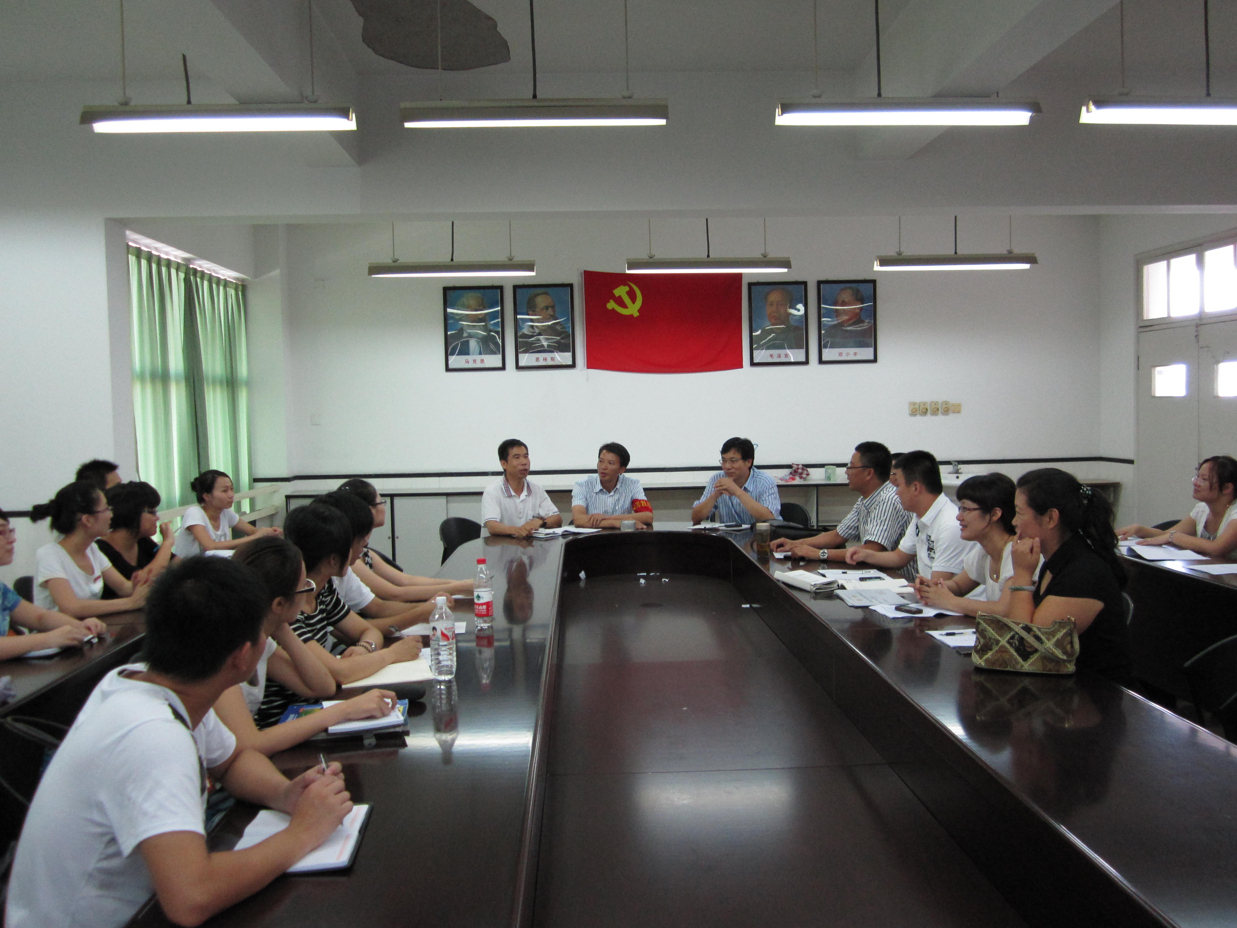 孙芙蓉副院长、教技系主任张新立老师及指导师李伟、刘根萍老师出席。首先,瓯海中学安排了实习生和班主任认识,并指导实习生中午吃饭饭卡的办理以及办公地点的位置。接下来主管教学的金志正副校长为实习生介绍了瓯海中学的办学情况、人文环境、地理环境、办学理念,并为14名实习生提出了殷切希望以及实习注意事项。孙芙蓉副院长在接下里的讲话中,再次为实习的同学们介绍了瓯海中学的关荣成就,并为14名实习生提出了5点诚恳的实习要求。最后,在指导教师虞希望老师的指引下,我们知道了学生的办公地点,教技系的3位老师还特地叮咛虞老师对我们实习生多方面指导。