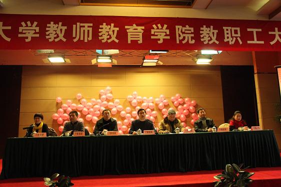 的全体教职工在此欢聚一堂。在首先进行的教职工大会上,常务副院长胡来林对2009年学院发展的整体情况做了简要介绍:经过全院师生一年的不懈努力,学院形象不断提升,资源优势明显增强,行政人员积极进取,整个学院充满了积极奋进的良好氛围。随后,胡院长公布了一批在教学工作中表现优秀的教师名单和在各项学科竞赛中获奖的学生名单。讲话最后,胡院长为全院老师送上新年祝福,会场响起阵阵热烈的掌声。接下来,党总支书记胡伟国为成人色情