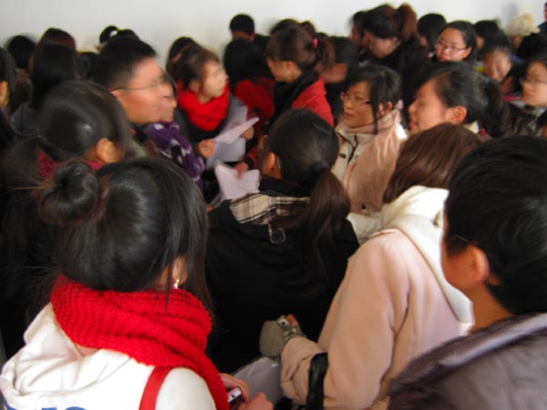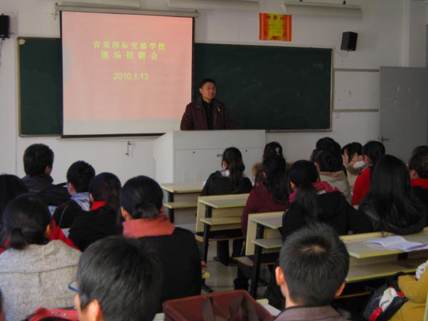 在育英国际实验学校会场,来自己成人色情 以及兄弟学院各专业的毕业生挤满了教室。该校祝志宏校长首先简单介绍了学校基本情况和用人要求等招聘基本信息,随后与毕业生进行交流并收集《简历》。在平阳林墨培训学校会场也坐满了前来应聘的毕业生,该校常务校长朱永杰老师向毕业生介绍了该校的办学理念和用人标准,并对毕业生进行了交流考察。