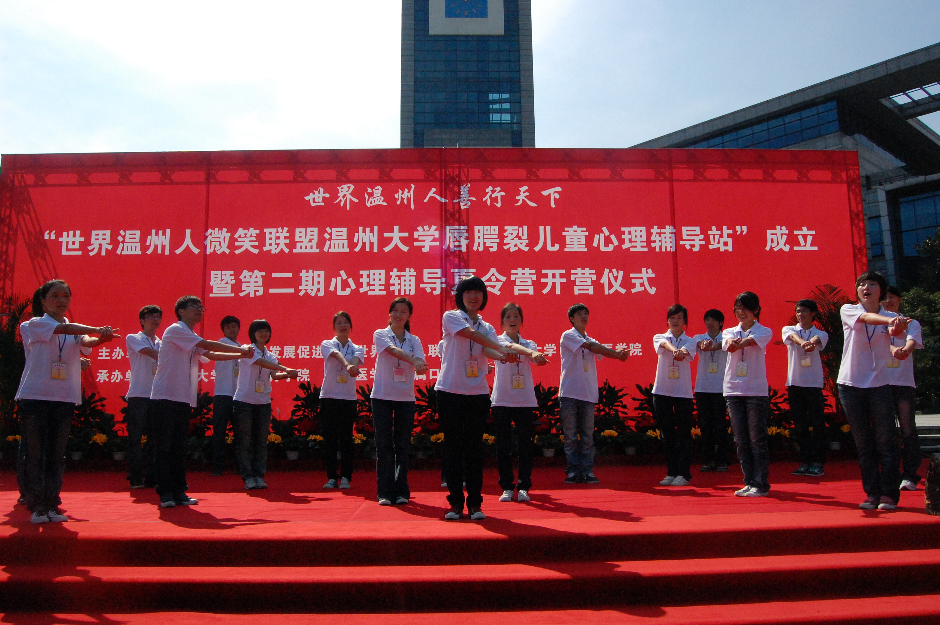 心理学系的师生们及温州医学院的志愿者们能利用他们的学科优势,共同加入这一活动,为唇腭裂儿童解除疾患,重塑生活的信心,更是我们社会和谐的重大体现。”最后,他又一次强调无论是何先生的慷慨捐助还是温大学子用爱心护航,都体现了温州人服务社会,回报社会的精神面貌。他衷心祝愿孩子们能在这里度过一个快乐的暑假。