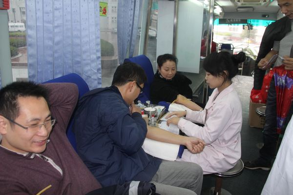 3月18日,4名教师一起到采血现场,经过填表、体检等程序,成为合格的献血人员,走进采血车,用自己的行动交上了一份合格的爱心答卷。胡孙贵老师献完血后说:“无偿献血是公民应尽的义务,作为老师参加无偿献血也是服务社会的一种很好方式。”