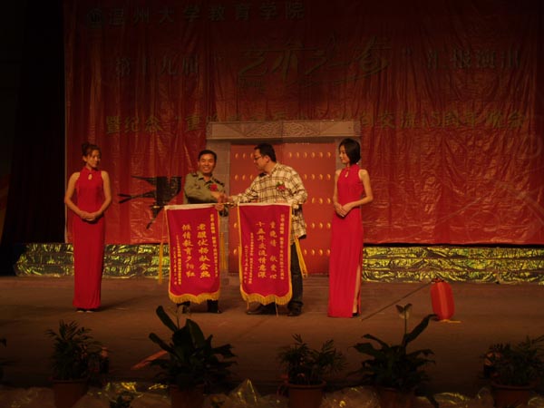 胡伟国书记在晚会现场致辞,他对成人色情 院“艺术之春”艺术节活动给予高度评价,总结了19年来同学们通过艺术节的专业技能锻炼所取得的丰硕成果;他对温州市军分区干休所为成人色情 学生提供实践机会表示衷心感谢,感谢老干部们15年来孜孜不倦的教诲,用鲜活的革命事迹教育同学们,使同学们学到了书本上难以传授的真谛。军分区干休所领导杨百京同志在随后的发言中,对成人色情 学生15年如一日,不辞辛劳地到干休所为老干部们服务表示衷心的感谢。在友好的氛围中,双方互赠锦旗。