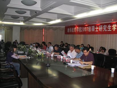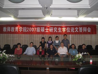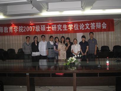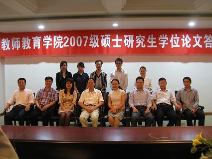 的胡来林教授、郑信军教授、张宝臣教授、潘玉进副教授、郭文斌副教授、胡瑜副教授、黄亨奎副教授;朱倩云副教授、万荣根副教授担任答辩委员会秘书。参加本次答辩会的07级研究生分别来自心理学、教育学和计算机这三个方向;08级、09级全体研究生参与旁听。