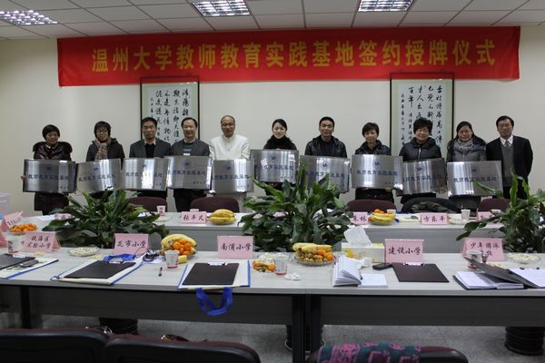 与温州市广场路小学、建设小学、蒲鞋市小学、瓦市小学、城南小学、瓯海实验小学等10所温州市知名小学举行教师教育实践基地签约仪式,副校长叶世祥、瓯海区教育局政工科副科长张平凡以及教师教育基地和教务处、教师成人色情