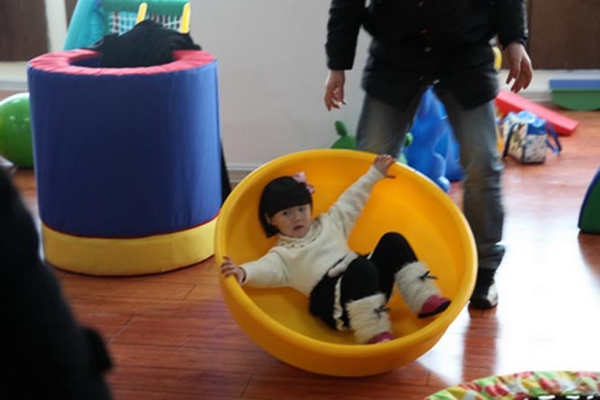 学前教育系五年一贯制的6名大二学生辅助指导。孩子们被这些精心设计的教具和学具所吸引,兴趣很高,家长们也反映这样的活动非常有意义,很多家长还就孩子的教育问题和戴老师进行了交流。下午也有10多名孩子进行了体验,同样取得了非常好的效果。