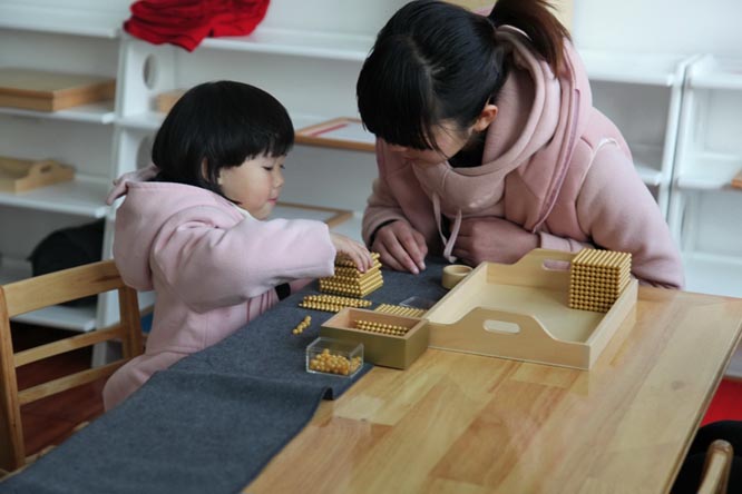 为了保证开放的顺利进行,教师教育实验教学中心几位老师早早的来到实验室,等待着孩子们的到来。8点40分左右,陆续有11名预约好的孩子来实验室进行了体验,学前教育系蒙氏教学专家戴聪聪老师对孩子们亲自指导,另有教师成人色情