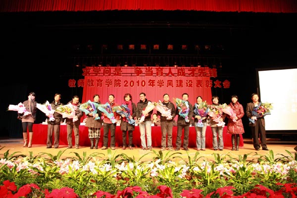 密切结合自身工作在平凡的岗位上创先争优,取得了一系列成果。为检阅成果、交流经验, 胡来林院长介绍了学院如何将创先争优与学风建设结合起来的经验,他从完善制度、加强管理、注重引导、营造氛围等角度交流了创先争优与学风建设的各项工作。在会上隆重表彰了学科竞赛、学风建设与文艺比赛的优秀指导师、班主任和获奖学生。 叶世祥副校长发表重要讲话。他指出,创先争优要密切结合实务工作,教师成人色情