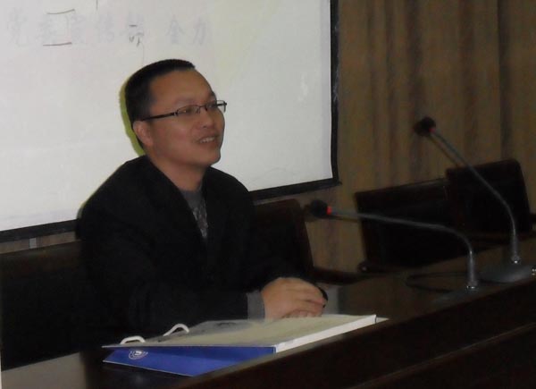 全力老师以上海世博会美国馆引入,从美国的价值观说起,将美国民主、自由、平等的价值观与中国仁、义、礼、孝为代表的价值观进行了比较。随后,他阐述了价值观、价值体系、核心价值观的含义及标准。紧接着,全力老师以中外著名企业的企业价值观以及温大“求学问是,敢为人先”的校训进一步阐释了价值观的深义所在,并以此与大家探讨了中国传统文化的核心价值观及当代价值观的缺失等相关问题。全力老师认为,作为一名共产党员,必须时刻牢记中国特色社会主义核心价值体系并充分理解它的概念、内涵。最后,他强调了当代大学生的价值追求与目标。