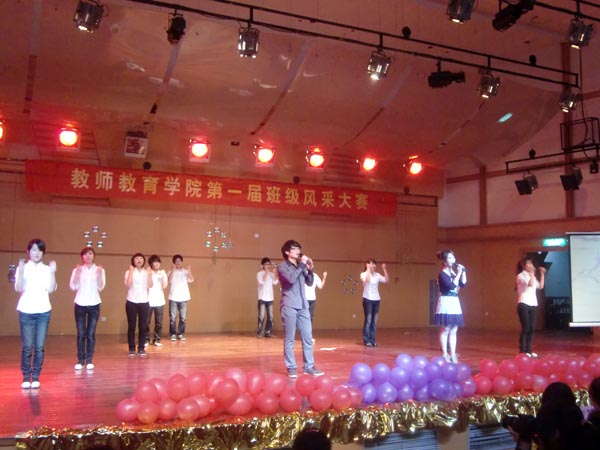 随着灯光的亮起,10教本带来的《Shine》舞蹈掀起了全场第一个高潮。五个舞动的精灵在音乐声中尽情跳跃,那舞动的身姿、整齐划一的步伐带给同学们的不仅仅是震撼,更是一种诱惑,让台下的同学们“蠢蠢欲动”。