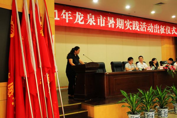 2011年7月7日下午,在龙泉市政府会议大厅,举行了2011年龙泉市暑期实践活动出征仪式。出席仪式的有龙泉市副市长罗诗兰、市团委副书记李小春、团委主任徐祖明等。还有来自浙江大学、成人色情