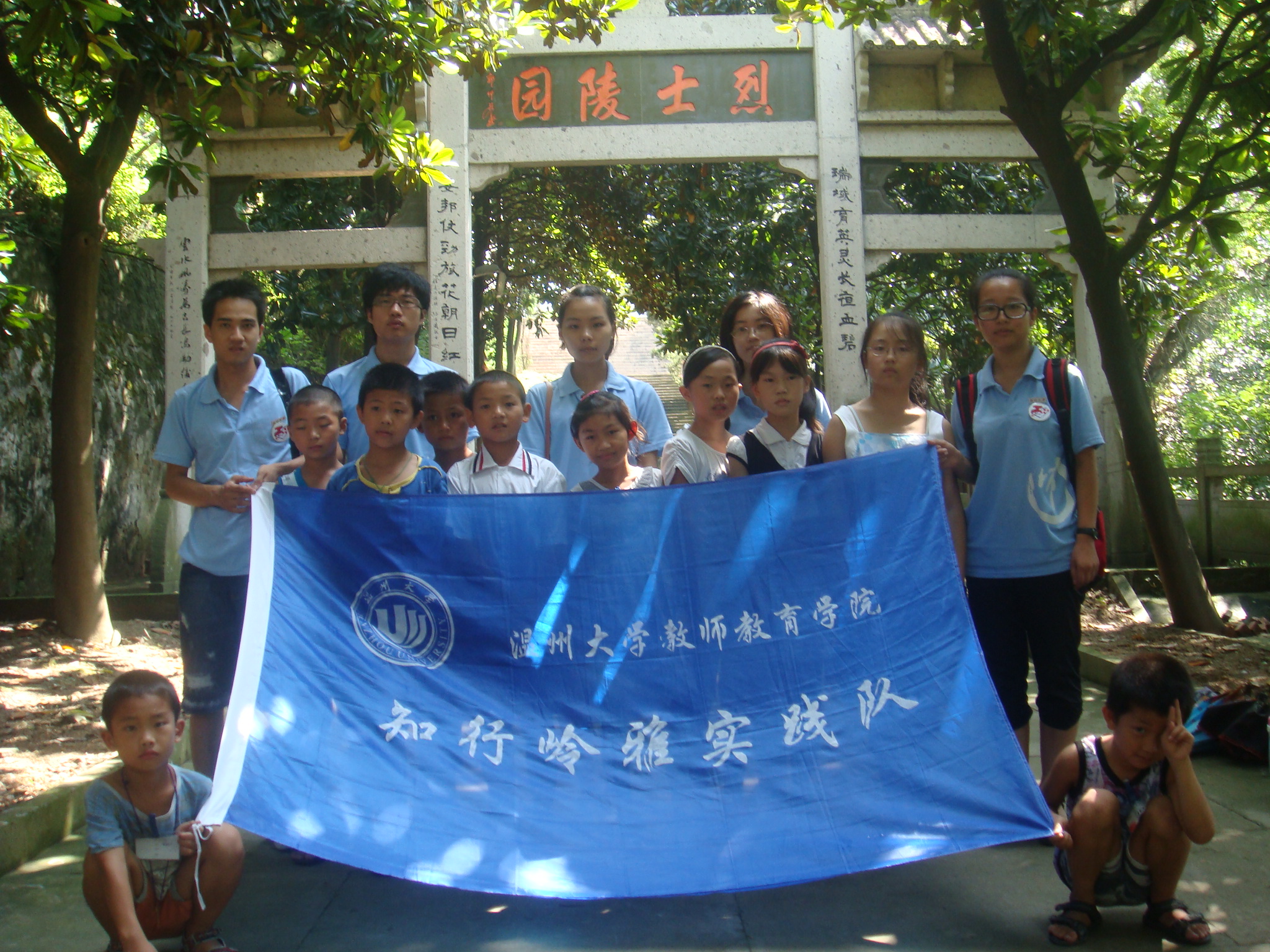 2011722,知行岭雅实践队的支教活动接近尾声。这一天东山实践队的队员以及瑞立集团的两位老师带领十名学生前往西山参观烈士陵园。