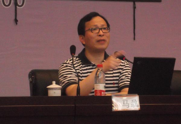 讲座主要由“用一生践行教育真谛”、“做受学生欢迎的好老师”、“人生因课堂而精彩”等三个部分组成。马骉老师结合高中语文教师的教学经历和学生个案,开章明义地指明教师应当树立“把人当作人、让人成为人”的教育理念。在漫漫29年的教学生涯中,他深刻总结出了“最理想的教育是让有不同潜能不同理想的学生得以释放和实现”的教育感悟。他还用“心中有梦、眼里有人、手上有活、脚下有路、胸间有度”五个短语描述了如何做一名受学生欢迎的好老师。讲座中,马老师介绍了自己参加全国语文课堂教学比赛时的过程与花絮,用自己的亲身经历告诉大家课堂教学的美妙之处,让人深切感受到人生因课堂而精彩。