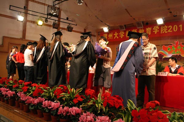 毕业典礼后,一场精心准备、轻松愉快的毕业生欢送会精彩上演,街舞表演、古筝弹奏、钢琴演奏、手语表演等精彩节目,既充分展示了教育学子多才多艺的一面,也向毕业生们送上了浓浓的祝福。“莫愁前路无知己,天下谁人不识君”,让我们一起嘱咐我们的2011届毕业生,事业有成、前程似锦!