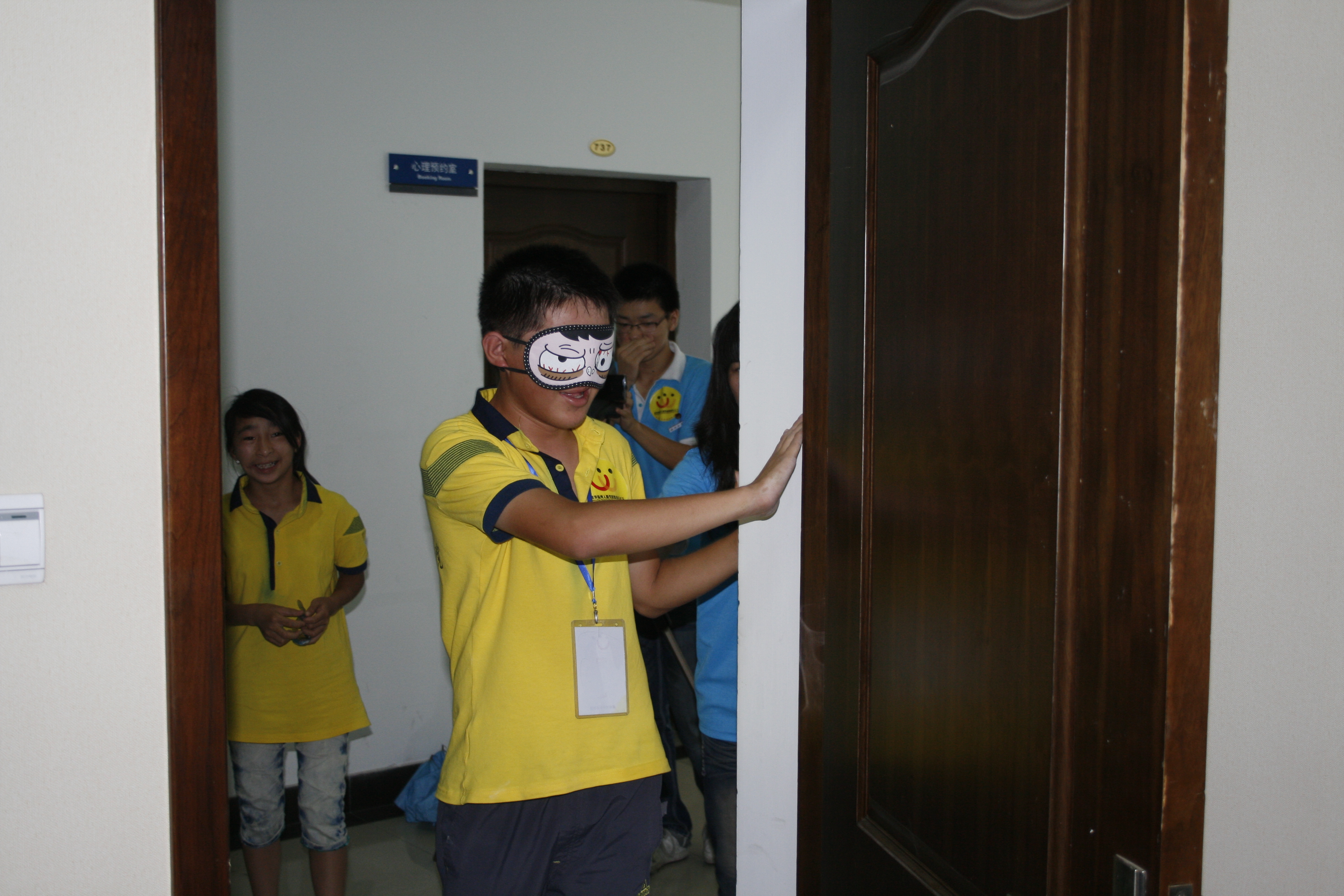 在接下来的团体辅导中,女生组进行了画画和沙盘游戏,主题为“我的一生——过去、现在、将来”。在游戏过程中,小营员们的脸上都洋溢着开心的笑容。而男生组则是在章圆圆老师的带领下玩了个小游戏,即营员们都用眼罩遮住眼睛,然后在队员的帮助下走了一层楼。这让我们体会到了在黑暗中有一双手扶着该是多么的温暖。后来章老师还陪我们一起分享了自己生活中觉得不公平、不幸运的事,营员和队员们都很真诚地讲了自己的故事,那些故事都让我们觉得相当感动。