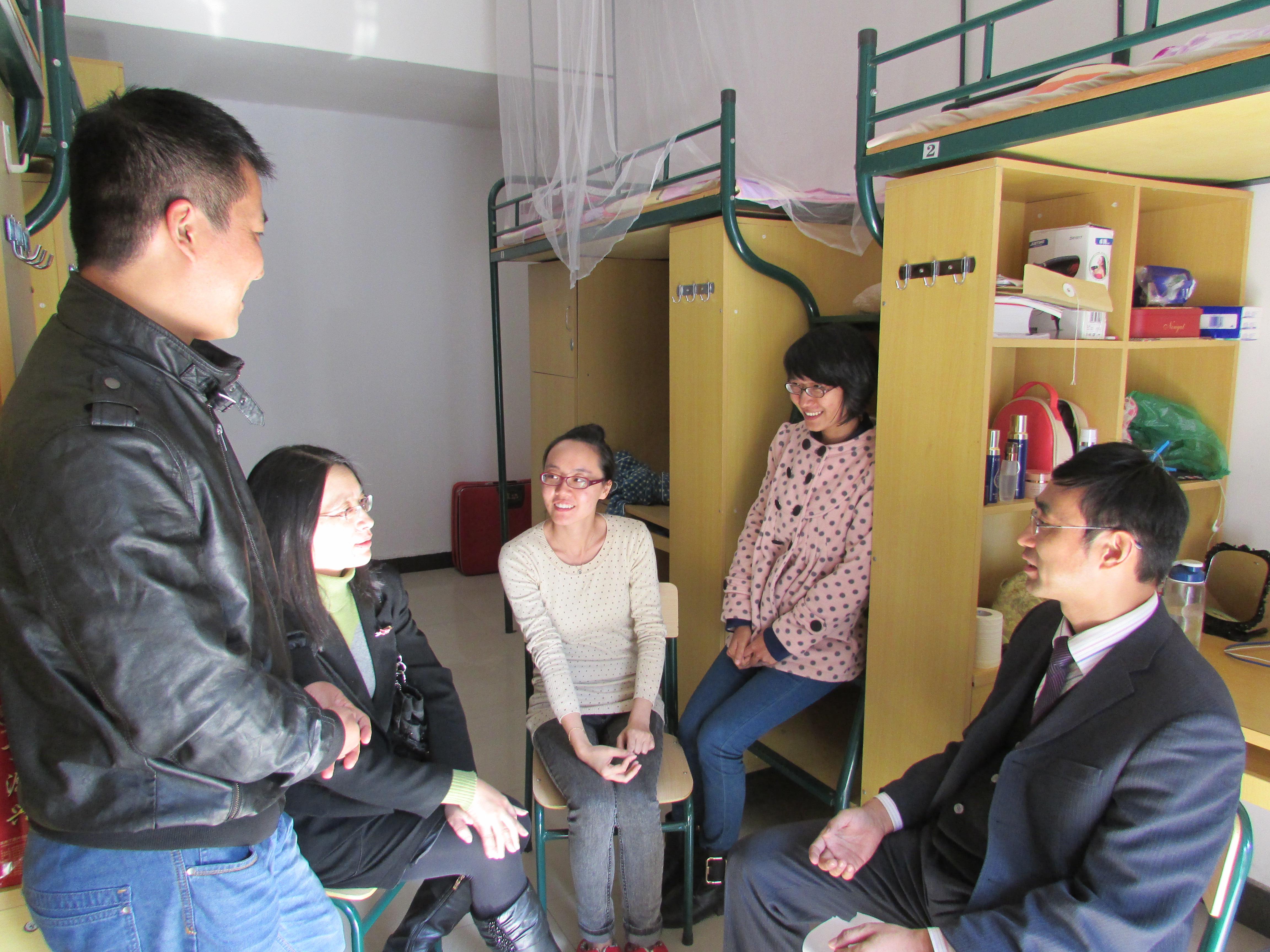 11月20日,教育学系教师在系主任折延东、系书记周奇的带领下,深入学生宿舍,关心同学们的学习与生活,将省文明寝室推进会、省公寓标准化建设检查等相关工作要求进行传达,并做好督促工作。折延东、周奇、段新明三位老师就不同年级学生成长规划、学习任务、寝室安全等问题,对研究生宿舍进行了走访。他们真诚地关心了同学们平时的学习情况以及生活情况,提醒大家天气转凉注意保暖,提高安全防范意识,保持宿舍卫生整洁。尤其要杜绝一切安全隐患,不使用大功率电器、不私拉电线,做到防患于未然,共同营造和谐、安全、健康的学习生活环境。三位老师了解了各年级同学目前的学习研究进展,强调同学之间要互帮互助,抓紧时间做好学习和科研工作,共同进步。