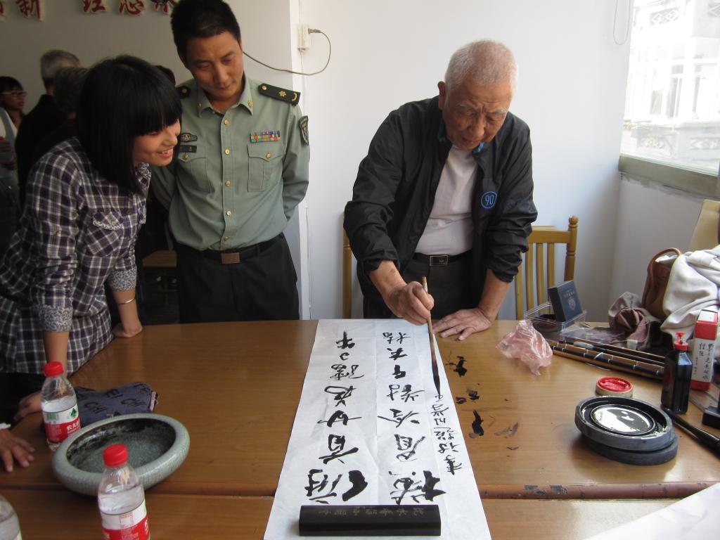 整场演出虽然节目数量比不上大型晚会,但是质量绝不输于大型晚会,在整场演出过程中,洋溢着浓浓的温馨感。演出结束后,被爷爷奶奶们称为大书画家的汤爷爷也按捺不住,拿出自己的文房四宝泼墨挥毫了一回。还有好多志愿者在看了爷爷的书法之后,都忍不住向爷爷请教练书法的方法,甚至讨要作品来学习的。