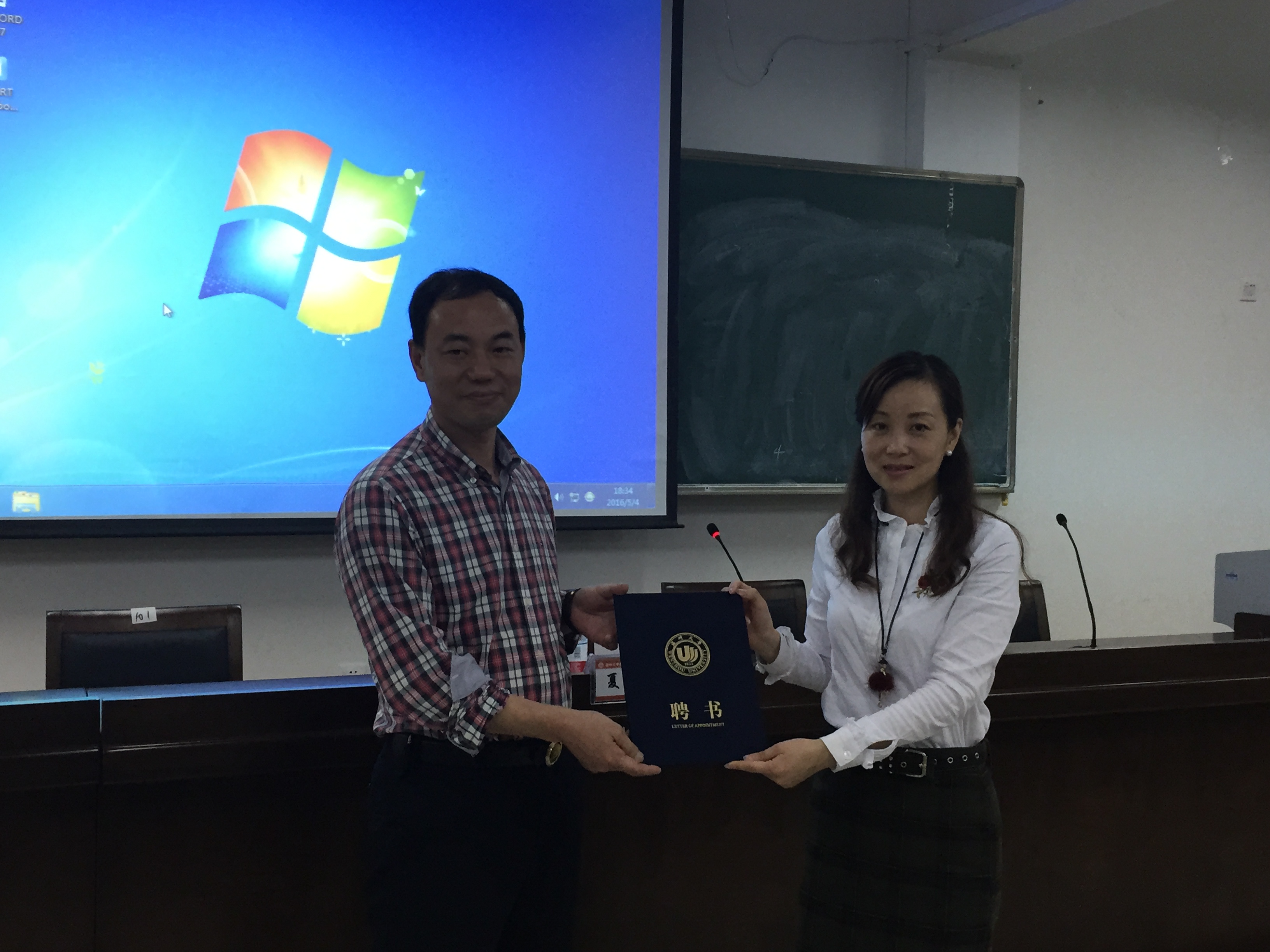 讲座开始之前,由学院党总支副书记杨丽君老师为夏科长颁发聘书,聘请夏盛良老师为成人色情
