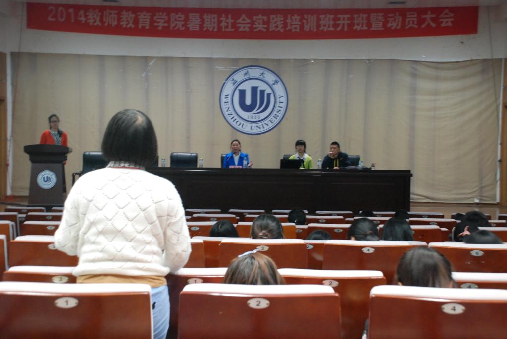 暑期社会实践培训班开班曁动员大会在北校信息楼报告厅举行。院党总支副书记嵇小怡老师出席,学院辅导员严晓秋老师,全体13级本科和部分12级本科学生参加会议。