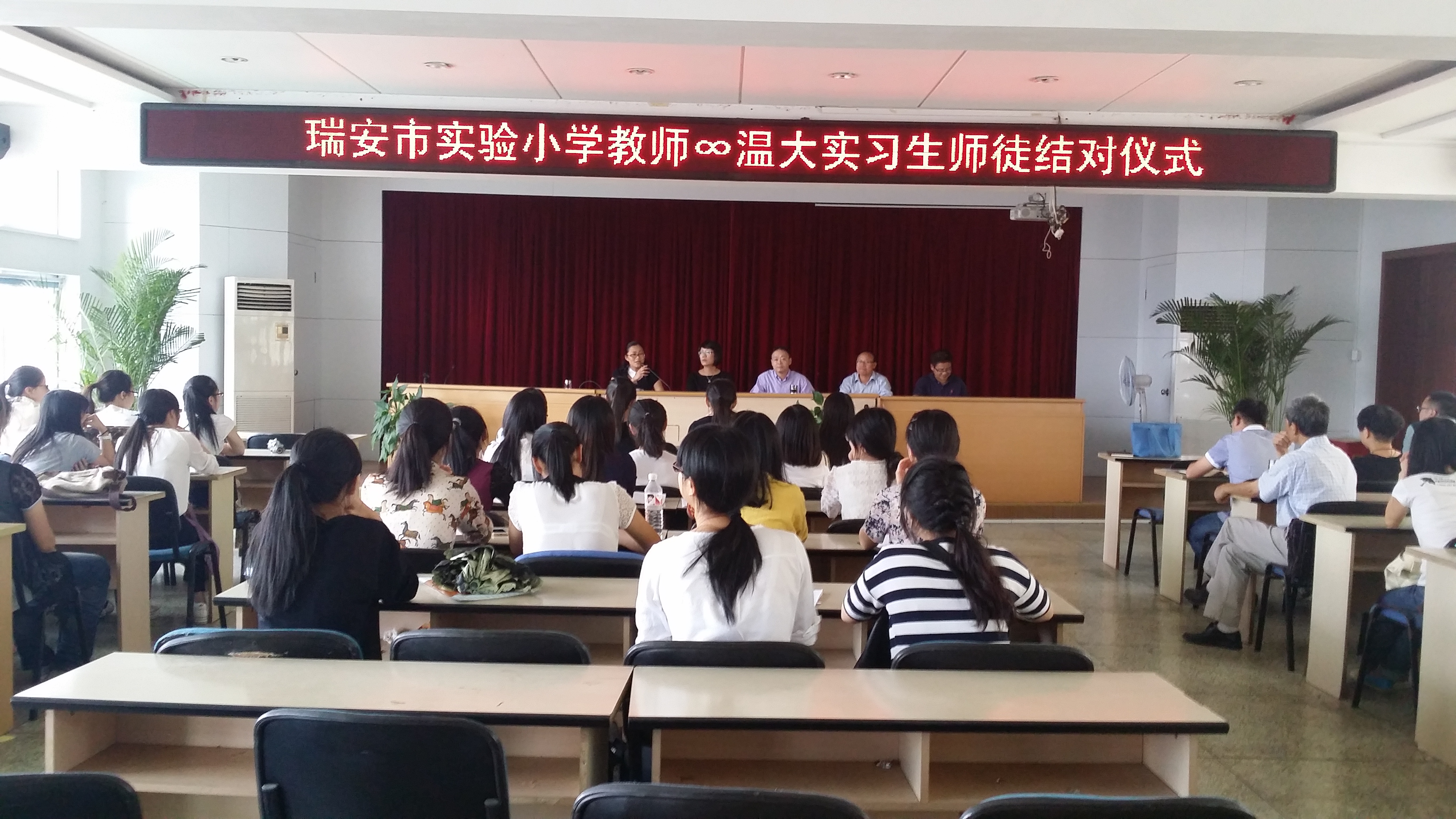 指导教师、在该校实习的37名同学参加了入点仪式;仪式由瑞安市实验小学单秀华副校长主持。