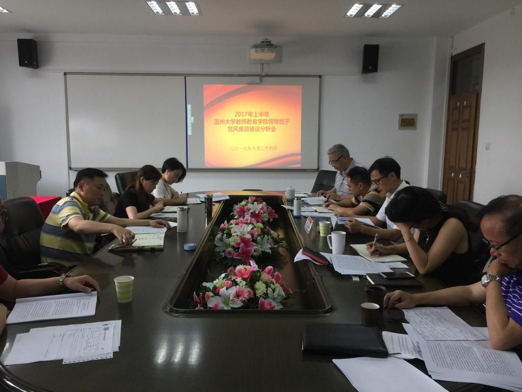 在在茶山南校区9号楼410会议室召开2017年上半年学院领导班子党风廉政建设分析会。副校长、校党委委员方益权同志,学院领导班子及党总支委员孙芙蓉、潘玉进、彭小明、叶新东、杨丽君、黄玮等同志出席会议,朱伟同志作为学院工会主席列席。学院党总支书记杨立淮主持。