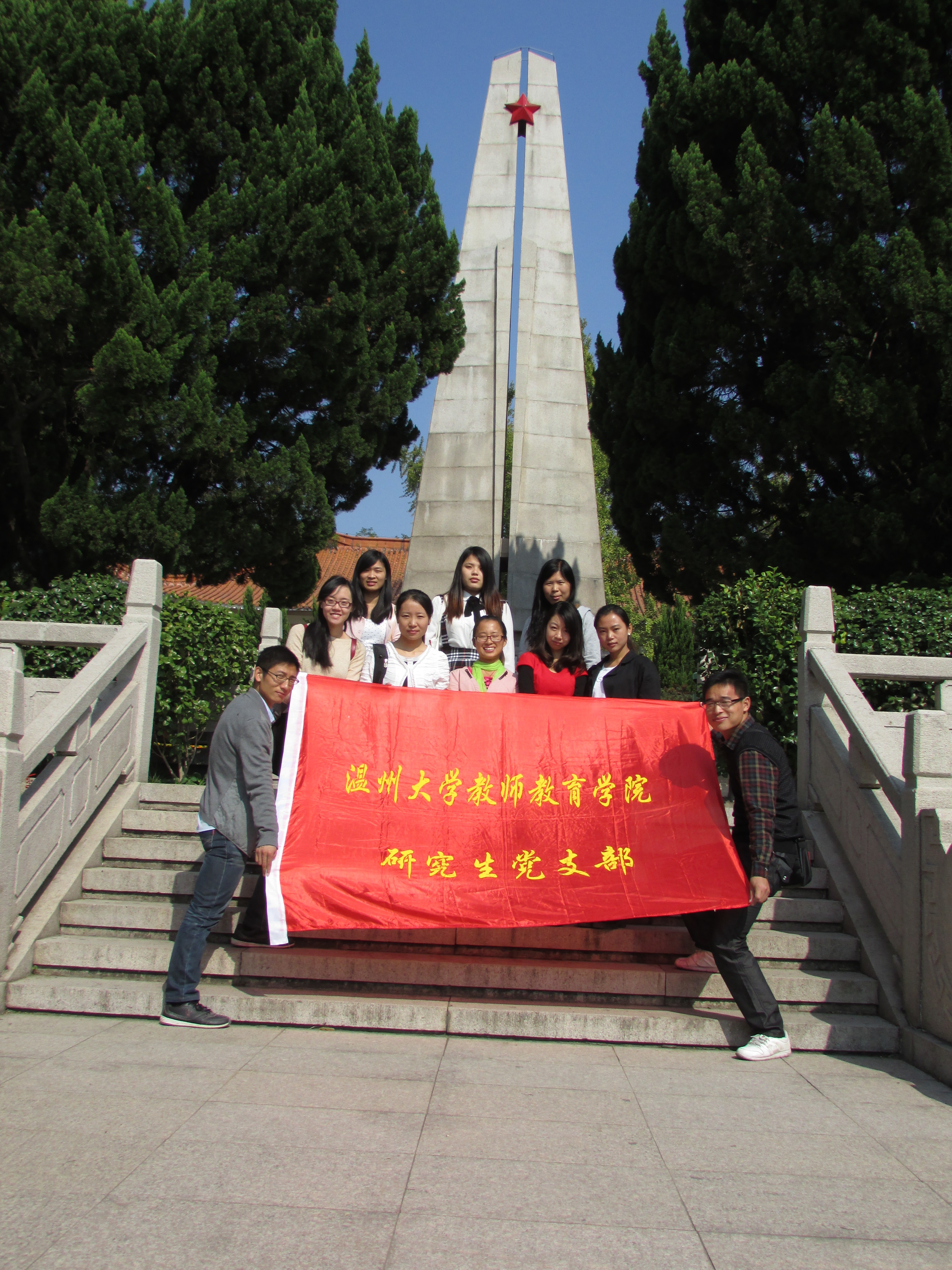 金秋十月,凉风送爽。在这明媚的秋意中,本月27日,研究生党支部组织了缅怀革命先烈,不忘革命精神的党员思想教育学习活动。由党支部书记袁苑带队,各年级研究生党员参与,研究生党支部前往江心屿革命烈士纪念馆进行思想学习。