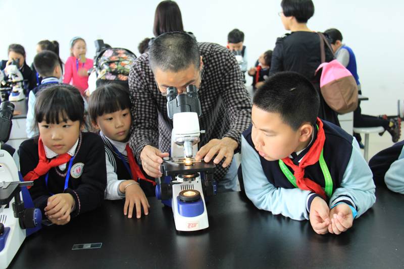 我们先将四个班级的小学生分成了四组,让这四组小学生同时在四个不同的实验室开展体验活动。在实验室里,小学生们认真听取各实验室负责老师的讲解,与老师和志愿者们积极交流互动。在自然科学室里,他们观察显微镜下的神奇世界;机器人实验室里,他们体验了智能机器人爬坡、投篮等运作全过程;在蒙台梭利实验室,他们体验了一回幼儿园中的美好回忆;在奥尔夫实验室,他们感受了各种乐器的美妙声音。整个活动十分愉快。直到上午11点半小学生们才离开。实验室开放活动有效地利用学校资源,让孩子们体验了各种实验教学仪器,激发了他们对科学知识的兴趣。