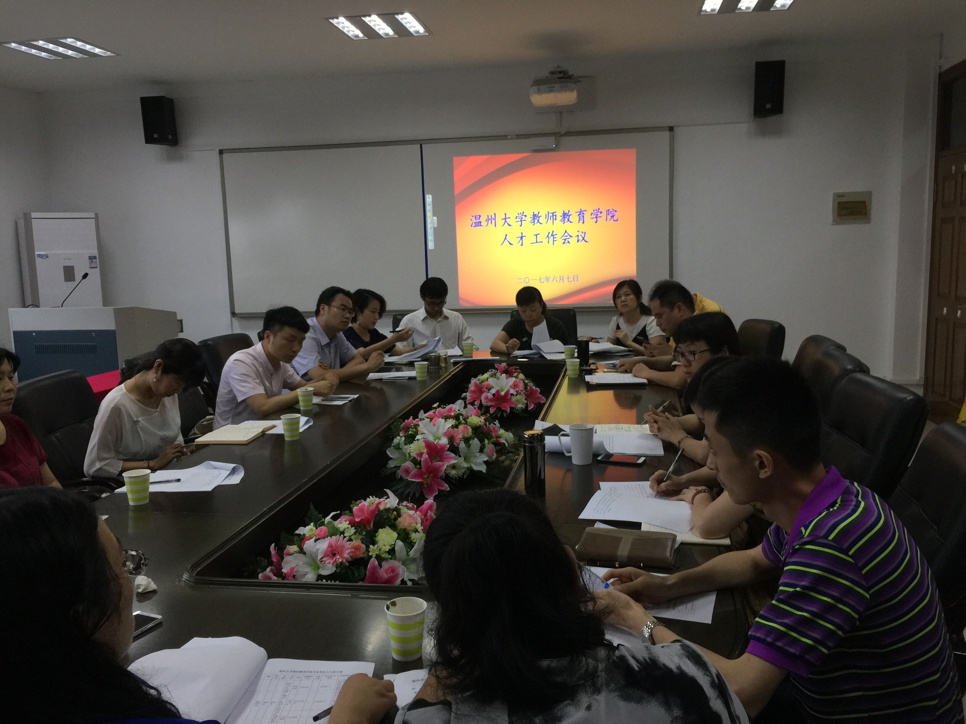 黄玮同志就2017年上半年人才引进工作做总结报告。孙芙蓉同志部署下半年人才工作。她指出,学院上半年人才引进工作进展顺利,取得了一定的效果。现在是十三五规划的关键时期,各位老师要紧紧围绕一级硕士点的建设,围绕专业建设,围绕人才培养,从学校、学院以及教师个人三个层面开展行动,积极关注高层次、广学缘、有潜力的人才。同时要重视现有师资的内部培养工作,各系要统筹安排好访学读博等工作,并有意识地促进教师外出交流学习,从而改善学院师资结构,提升师资质量。