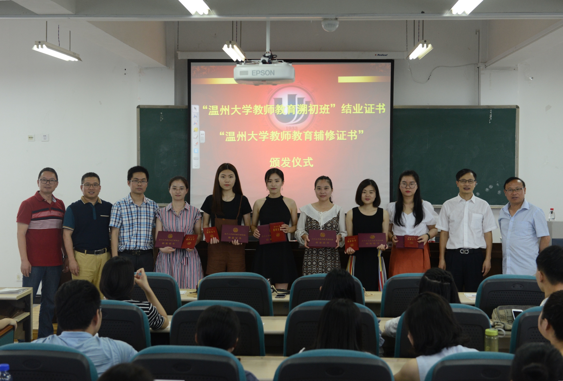 最后,方校长为同学们颁发了“成人色情 教师教育溯初班结业证书”和“温州大家教师教育辅修证书”。参加典礼的领导、老师和同学们在教育楼一楼“师范气质”牌匾下合影留念。