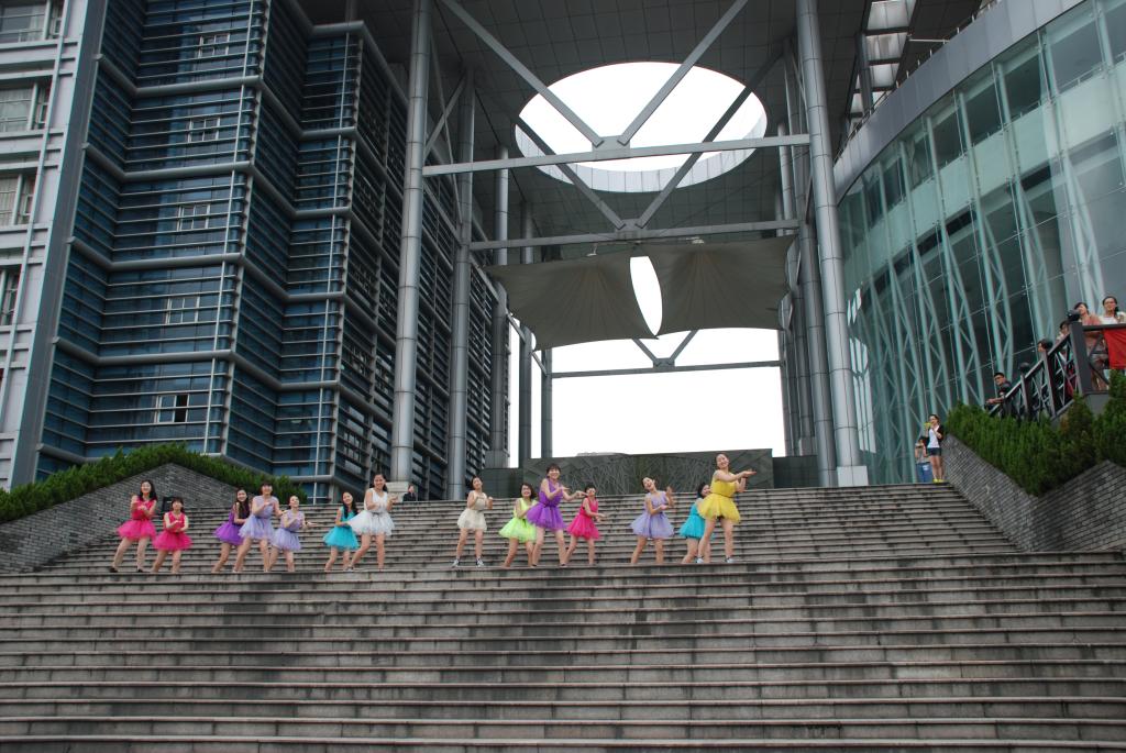 的毕业生们拍完毕业照后,就在拍照现场11学前大专1、2、3班的毕业生们用他们最青春洋溢的方式——舞别母校。简单的扩音设备播放出律动的旋律,她们表演了自编自导自演的韵律操,带动在场所有的同学、老师跟他们一起舞蹈。她们再一次把最青春、最靓丽、最难忘的风景线留在母校!