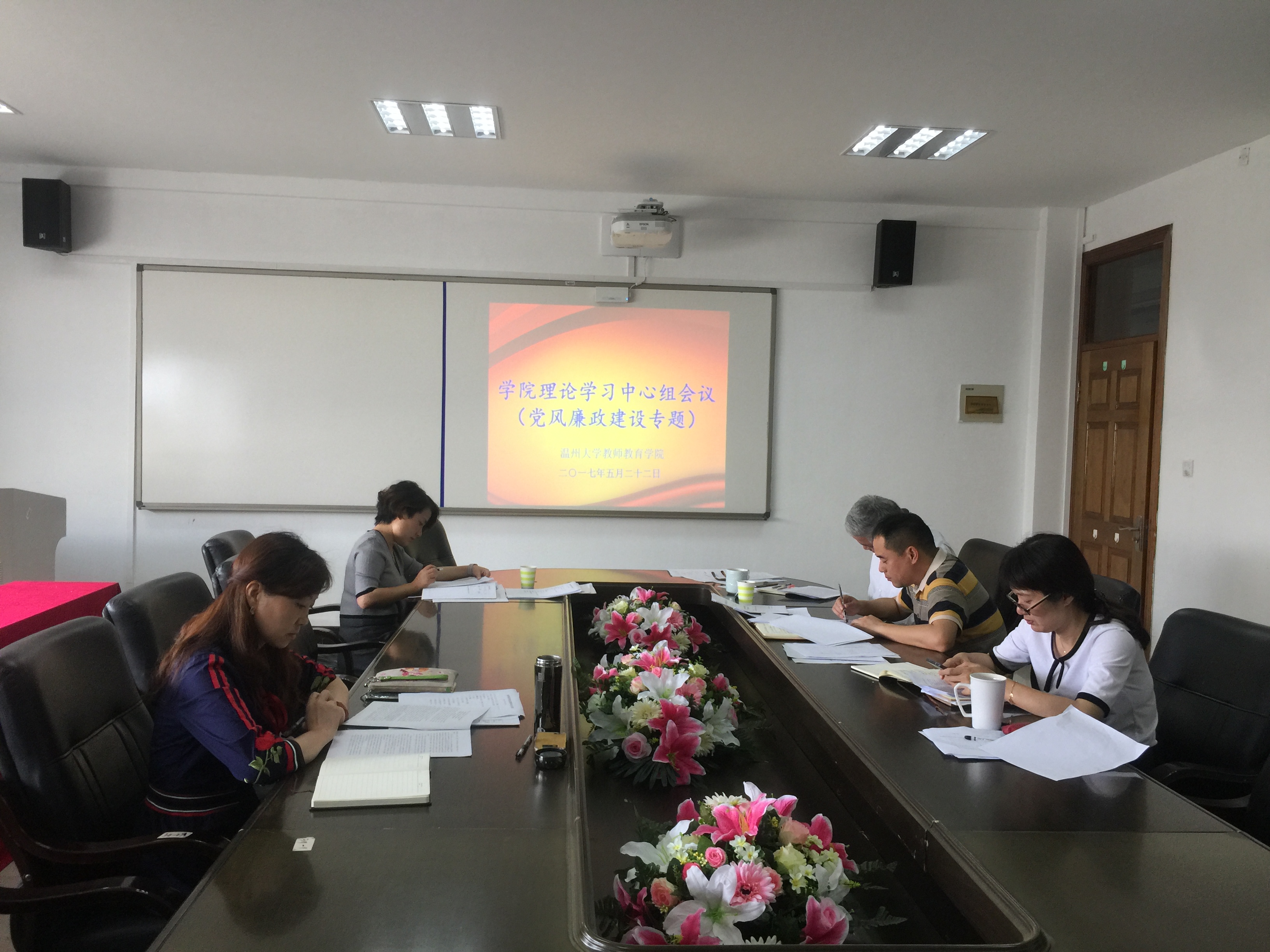 在南校区9A410会议室召开理论学习中心组会议,学院领导班子及党总支委员参加,会议由杨立淮书记主持。 本次会议专题学习党风廉政建设责任制。会上,杨立淮书记组织全体与会人员认真学习了习近平总书记在十八届中央纪委七次全会上的重要讲话精神。他指出,在十八届中央纪委七次全会上,习主席站在全局高度,充分肯定了近年来全面从严治党取得的显著成效,并深刻分析判断形势,明确提出了今后工作的总体要求和主要任务。学习贯彻习总书记重要讲话是一名党员干部的政治任务,要以强烈的使命感责任感,再接再厉,乘势而上,巩固拓展全面从严治党成果。 杨立淮书记还结合中央纪委监察部发布的系列社论文章进行拓展学习,并带领与会人员重温了《教师成人色情