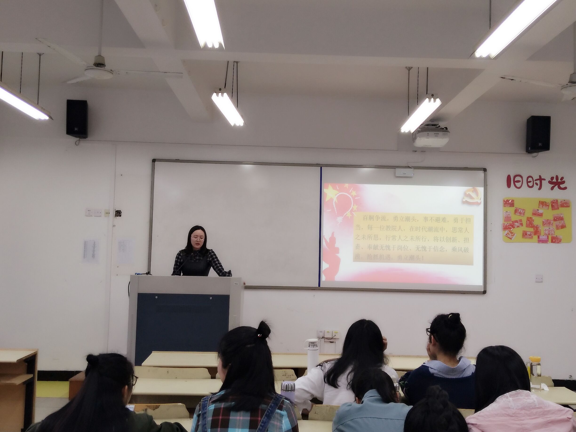 学生科辅导吴超智给15应心的学生开展微党课时说道,创新服务根植学生发展血脉;为学为师助力学生成才道路;至真至美引领学生立德树人;百舸争流,勇立潮头,事不避难,敢担当,每一位教院人,以创新、担责、奉献无愧于岗位、无愧于信念。