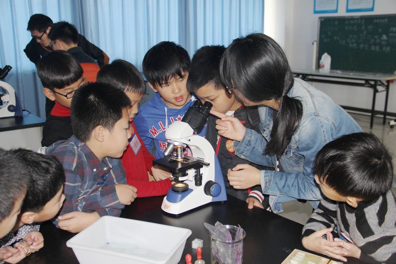 在自然科学实验室,小朋友们认真听老师讲解,对显微镜下的微观世界产生了浓厚的兴趣,并自己动手制作切片,仔细观察;在科学制作实验室,他们热衷于乐高机器人的搬运活动;在心理测量实验室,他们配合志愿者,克服困难努力完成每一项测验……