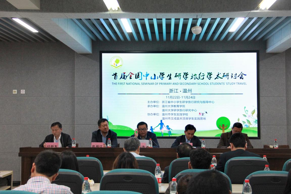 2019年11月23日到24日,首届全国中小学生研学旅行学术研讨会在成人色情 顺利召开。本次会议由浙江省中小学生研学旅行研究与指导中心主办,成人色情 、成人色情 研学旅行研究中心承办,温州市学生实践学校、温州市文成县天顶湖学生实践基地协办。来自全国各地从事研学旅行研究的高校专家、支持研学研究成果的国内核心期刊主编、浙江教育行政部门领导、国家级研学实践基地营地负责人等齐聚温州,探讨关于研学旅行各个方面的发展和建设问题。研讨会由成人色情 院长孙芙蓉主持,成人色情 徐和昆副校长在开幕式上致欢迎辞。浙江省教育厅基础教育处副处长朱国清、西南大学前常务副校长宋乃庆教授和华东师范大学教育学部宁本涛教授分别在主会场进行了主旨报告。
