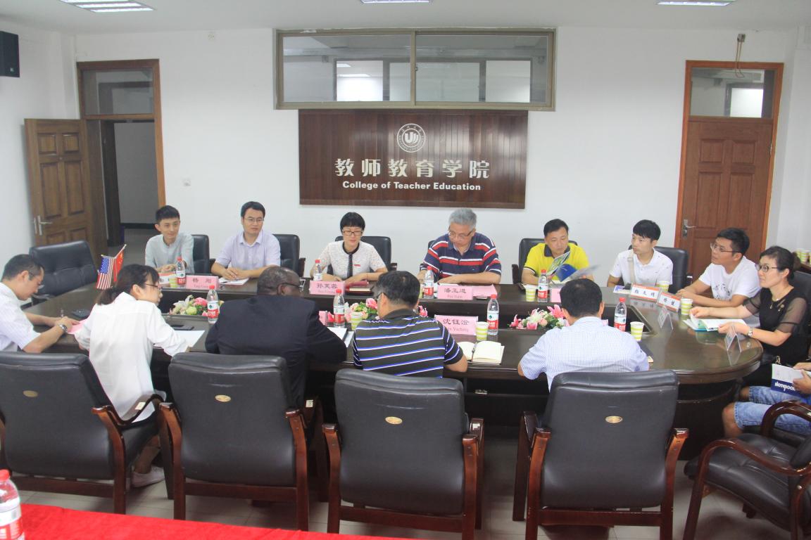 2018年9月17日上午9:30,美国阿帕拉契州立大学副校长Dr. Jesse Lutabingwa教授(兼任国际研究与发展主任)来成人色情 洽谈国际教育合作事项。学院领导孙芙蓉院长、潘玉进副院长、叶新东副院长、院长助理杨刚博士、国际处熊勇副处长、商学院王洪斌副院长以及各系(中心)系主任和相关骨干教师在南校区9号楼A410会议室出席并召开了这次会议。