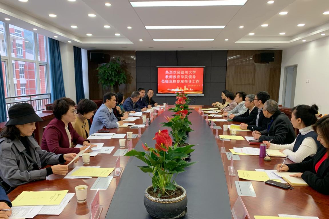 为加强人才培养的全过程管理,从源头上提升学前专科生的培养质量,20191127日下午,成人色情 党委书记何毅、副书记彭小媚、学前系主任李娟、副主任陈铿及教学科、学前教育科负责人和部分专任教师等一行近十人赴成人色情 专科教学点温州市中等幼儿师范学校进行调研并开展检查指导工作。温州市中等幼儿师范学校校长蒋高烈、副校长戚强建和各科室负责人接待成人色情 指导检查组一行。
