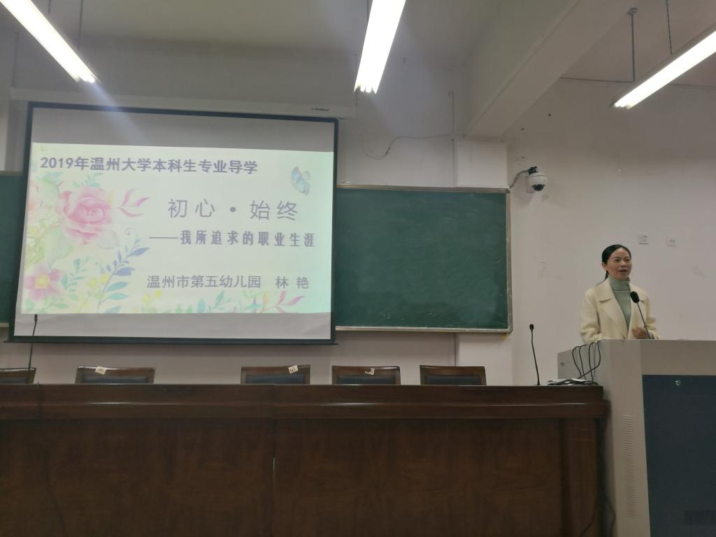 为提升学前教育专业本科新生的职业认同感,2019年1月2日下午,成人色情 教师成人色情 学前系邀请浙江省特级教师、温五幼集团园总园长林艳作题为《初心·始终——我所追求的职业生涯》的专题讲座。