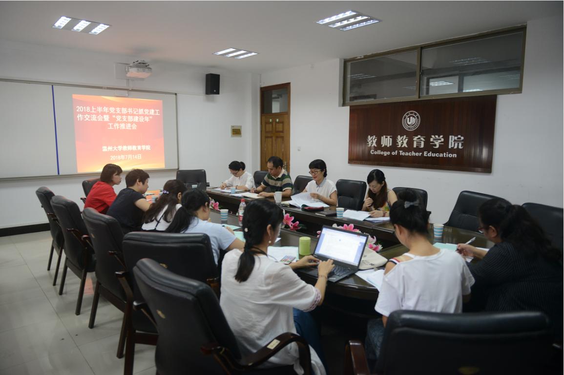 7月15日上午,成人色情 召开2018年上半年党支部书记抓党建工作交流会暨“党支部建设年”工作推进会。学院党委委员、各支部书记以及党务办公室成员参加会议。会议由杨立淮书记主持。