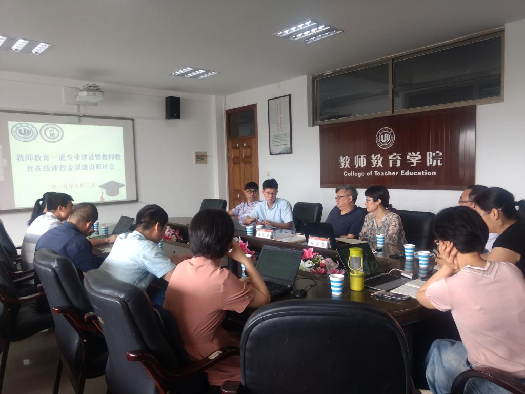 为进一步提高学院师范类人才培养能力,促进教师教育内涵式发展,2019年7月2日下午,成人色情 教师成人色情 召开了“教师教育一流专业建设暨教师教育在线课程金课建设研讨会”。会议由孙芙蓉院长主持,并特邀华东师大崔允漷教授、成人色情 创业人才培养学院施永川院长莅临指导。