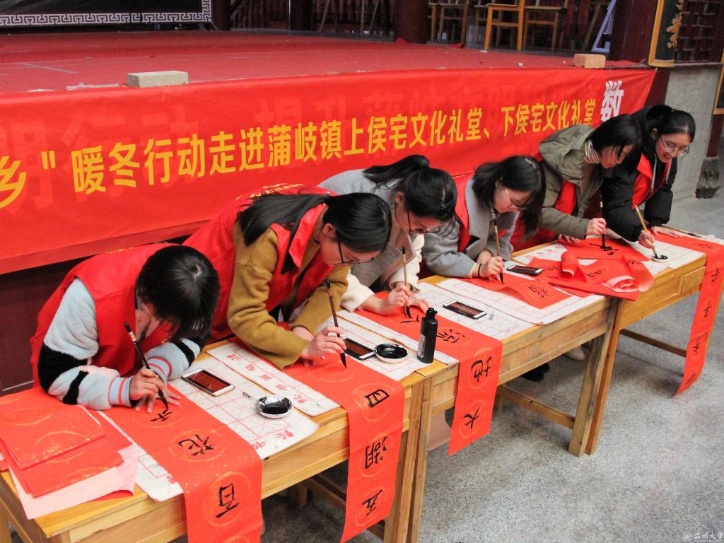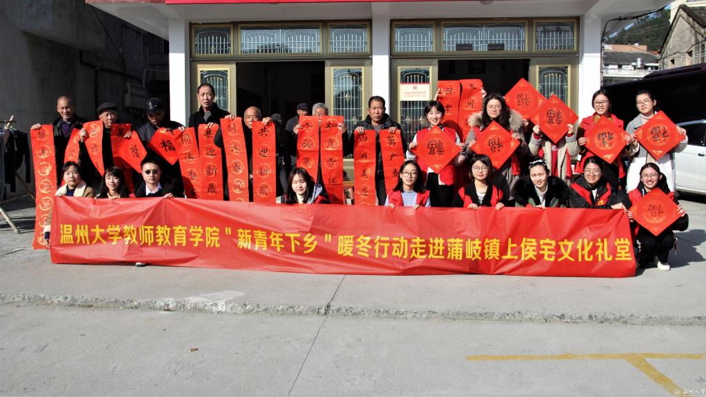 年关已近,新春将至,寒潮抵挡不了志愿者们下乡送温暖的热情。2018年1月10日14:00,成人色情 教师成人色情 “新青年下乡”暖冬行动走进上侯宅文化礼堂、下侯宅文化礼堂,拉开了迎新春的序幕。翰墨飘香迎新岁,喜气洋洋的春联蕴含着教院学子满满的心意;载歌载舞贺丰年,诙谐欢快的三句半、柔中带刚的太极都为蒲岐镇老人们带去了欢声笑语。